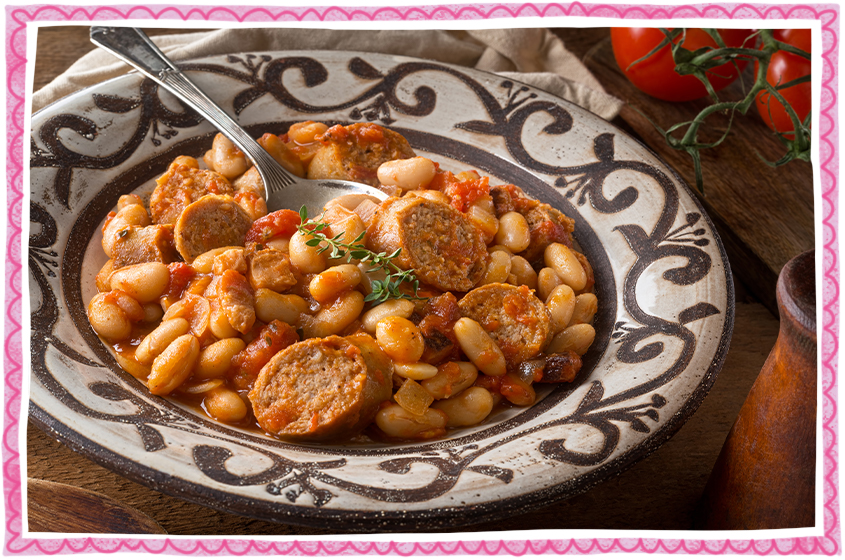 One-pot veggie sausages and beans